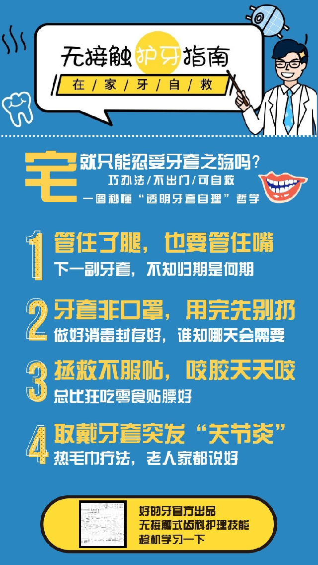 好的牙主创们通过头脑风暴及相关咨询问题的统计,整理了这份「无接触护牙指南」,希望能帮助亲们,在非常时期平稳度过疫情。