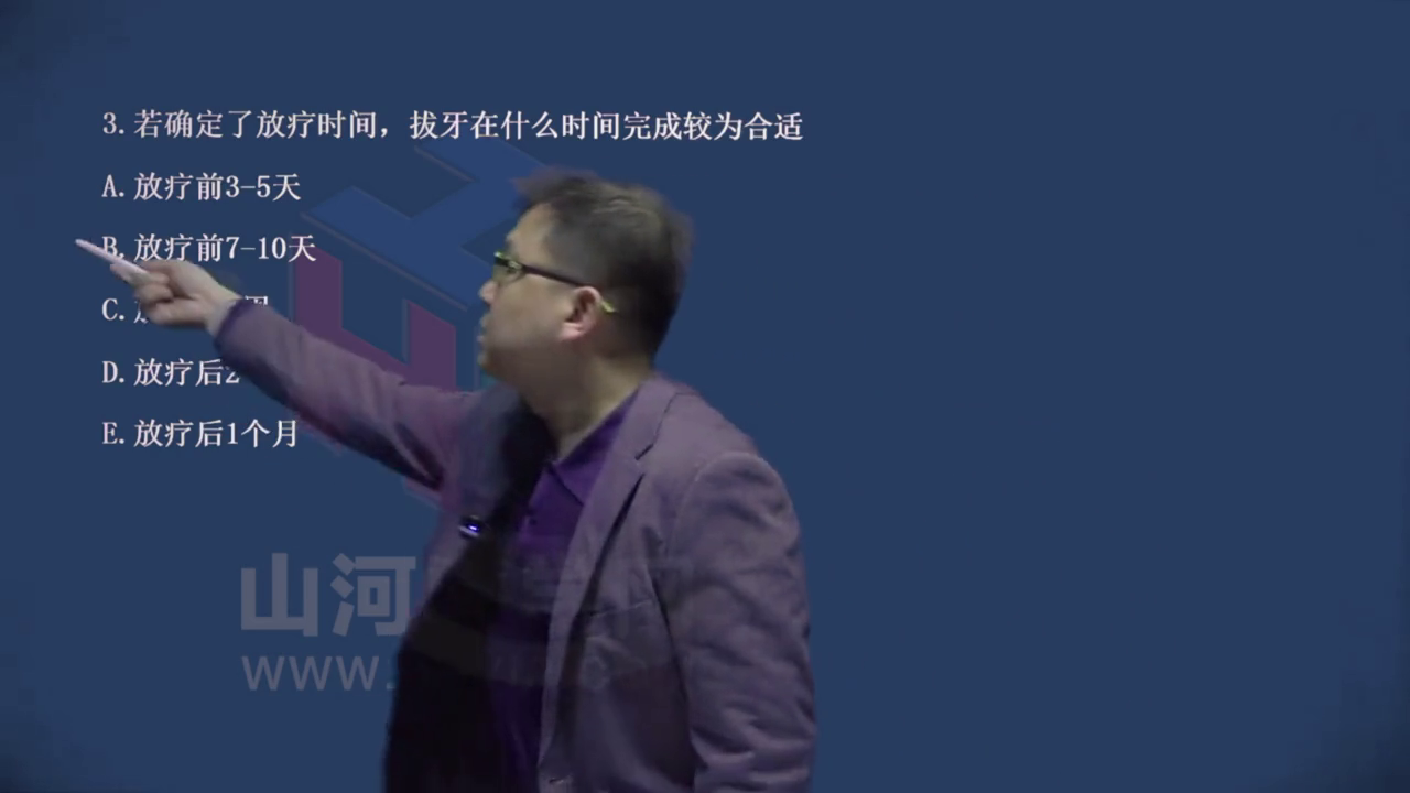 第二个就算是血压降下来也要加镇静药物,避免情绪波动血压升高,选择c、D下一题,如果确定了放疗时间拔牙在什么时间完成,放疗前七到十天是最理想的,给他七到十天的确定一个这种时间段,在这之前可不是之后这是最理想的。