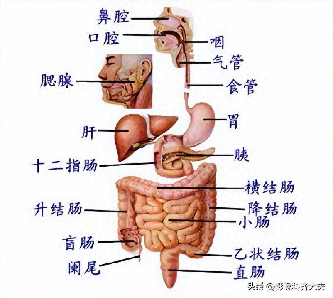 消化管始自口腔,终于肛门。包括口、咽、食管、胃、小肠(又分十二指肠、空肠、回肠)、大肠。临床以十二指肠为界,将十二指肠以上消化管称为上消化道,空肠以下消化管称为下消化道。