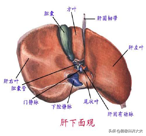 有两纵一横沟,分为左叶、右叶、方叶和尾状叶。