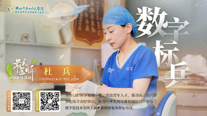 作为佛山市口腔医学领域中唯一的杰出青年人才,杜兵一直致力于口腔疑难疾病及复杂病例的诊治攻坚,在数字化精准医疗、纳米仿生医学和骨组织工程研究方面有所突破,创新性地通过微创、数字化手段解决口腔颌面部缺损患者的分段式赝复体修复难题,在国内率先将计算机辅助设计和加工的数字化技术引入上颌骨缺损赝复体修复领域,为推动口腔临床技术发展和科技研发作出积极贡献。