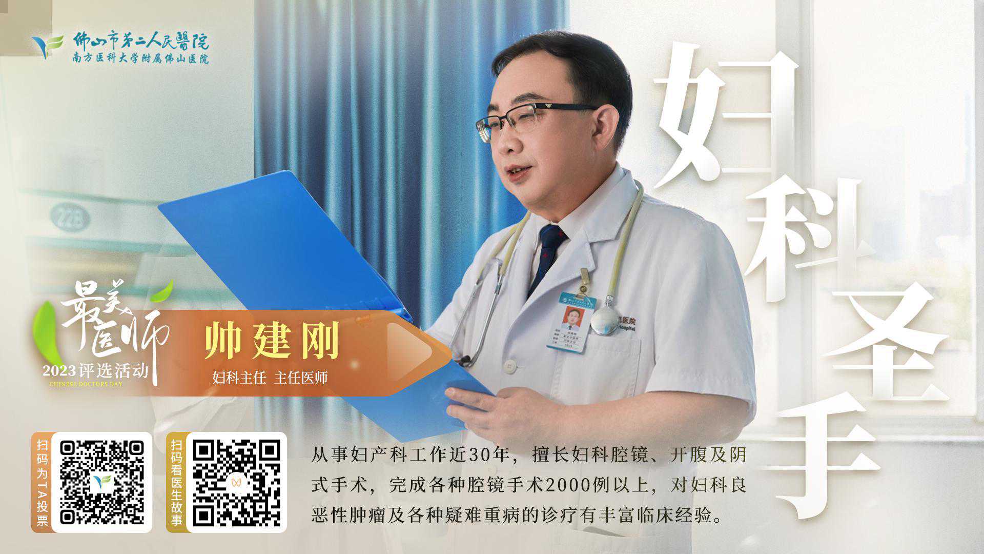 从事妇产科工作近30年,帅建刚擅长妇科腔镜、开腹及阴式手术,对妇科良恶性肿瘤及各种疑难重病的诊疗有丰富临床经验,完成各种腔镜手术2000例以上,其中不少是四级手术。在医院每月公布的四级手术和微创手术数量排行榜中,他总是名列前茅。