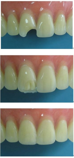 如果只是牙齿前端的一小小部分被磕掉了,并没有损伤到牙本质,那处理起来就比较简单了;用人造的填充物就可以把残缺的部分补起来;或者直接定制个牙套,把断齿套住,这样既不影响美观又不影响牙齿日常咀嚼功能。