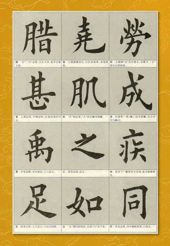 简介应书友们的要求,今天继续解析田英章先生楷书《九成宫醴泉铭》。需要说明是,单字是从下面作品里摘取制作的,已解析过的字附上链接,方便书友查阅。忧国忧民积劳成疾,皮肤和尧帝一样变成了干肉的形态,手脚上结的趼子超过了大禹,第二百八十五个字:腊腊xī(là):左右结构,左收右展。左部“月”旁左斜抗肩,不可写宽...