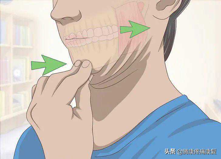 将两根手指放在自己的颞下颌关节上(找不到的话,可以通过张开嘴感觉靠近耳朵下方关节最不舒服的位置来定位)。