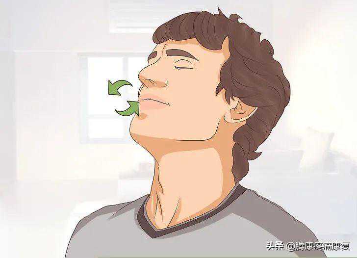 然后缓慢呼气五秒,尝试进一步放松下颌,将注意力集中在下颌上的每一块肌肉上。