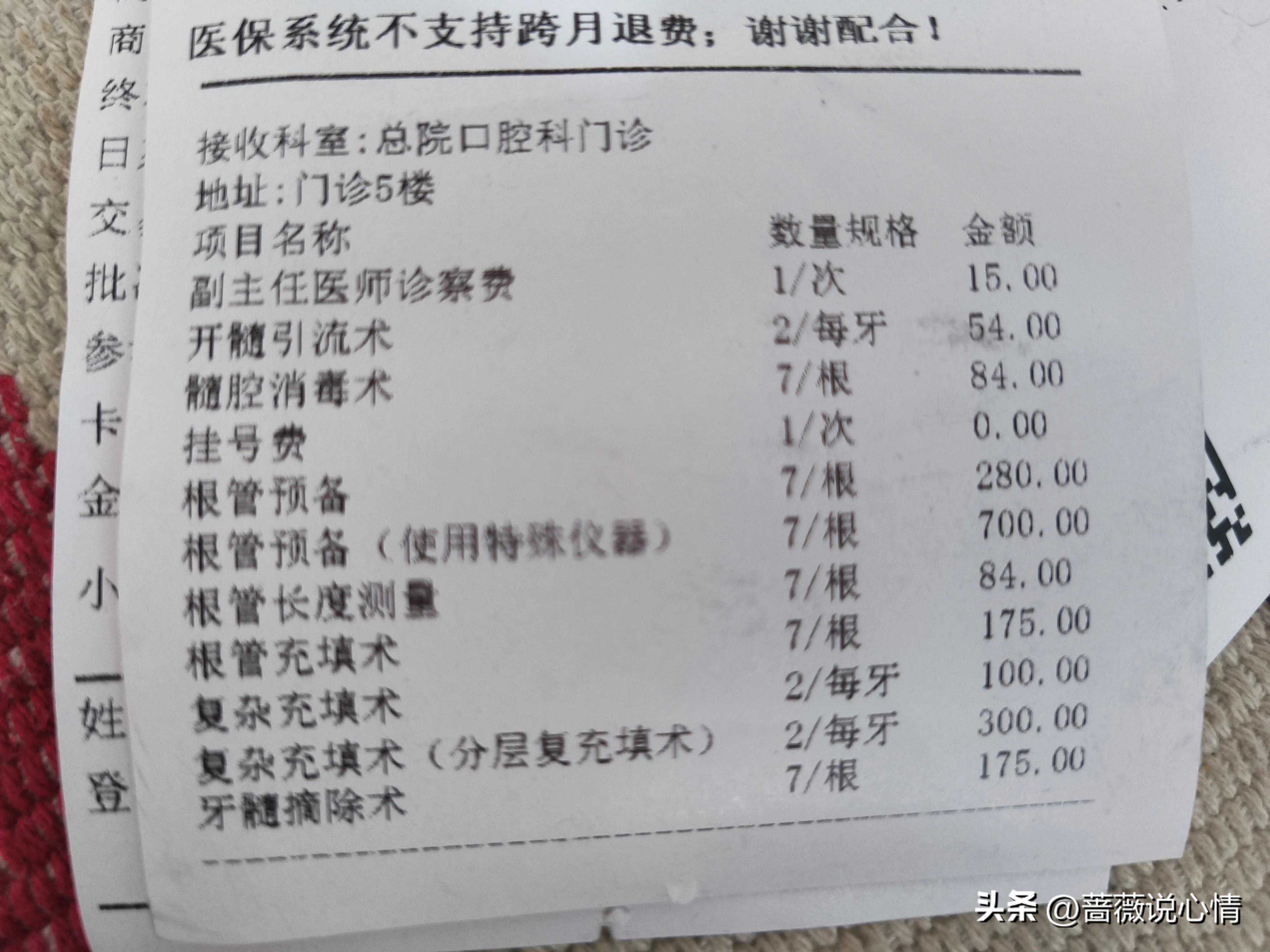 两颗牙齿七次治疗,费用一共是1967元,医保报销完之后个人支付1032.86元,感觉还是比较良心,毕竟每次耗费大夫接近一个小时的时间,还有很多耗材。