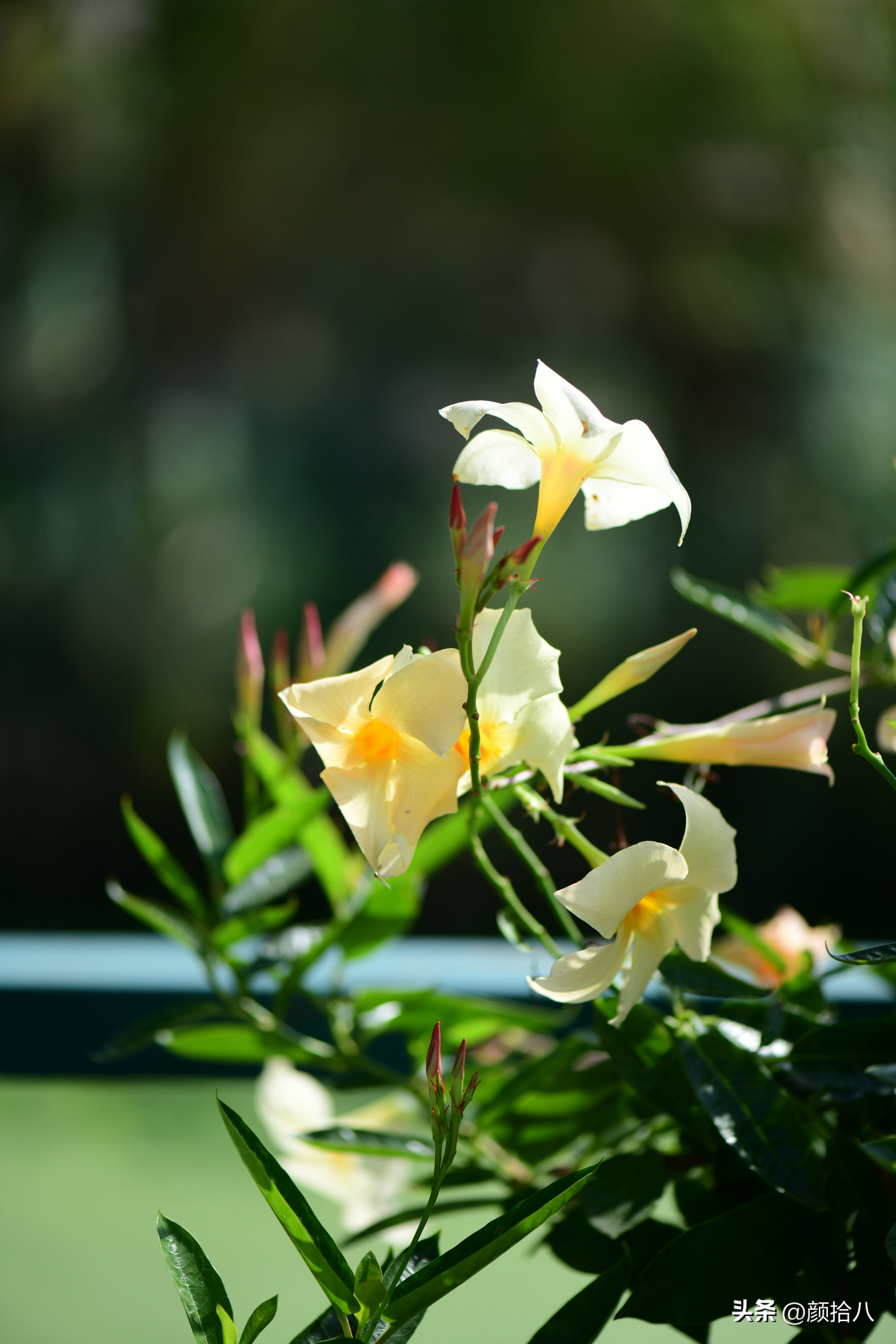 河边的水汽充足,下午4点后就没有西晒太阳了,每天傍晚浇透水,花盆小,第二天又全部干透。这些应该都是这盆飘香藤不断开花的相关因素。