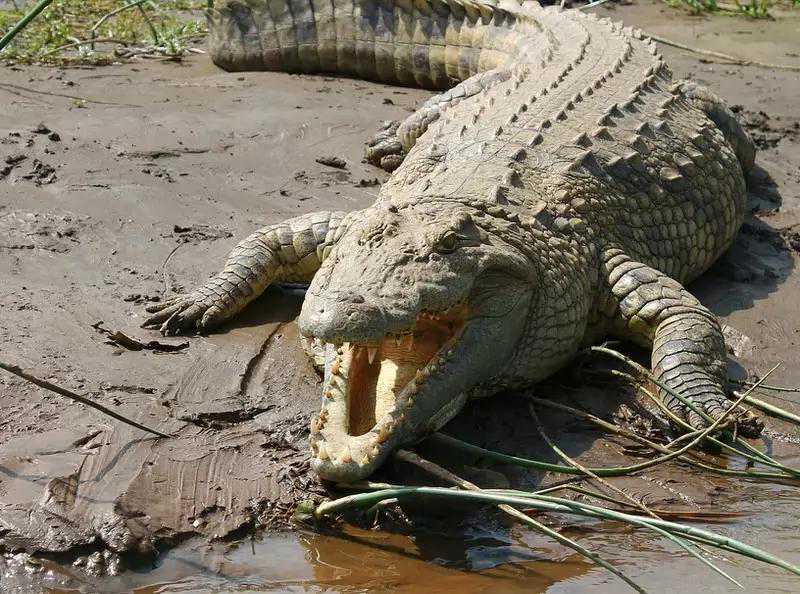 尼罗河鳄鱼是世界上第二大爬行动物。它们栖息在撒哈拉以南非洲的河流、沼泽和沼泽中。一条成年尼罗河鳄鱼长6米,重800公斤。它们没有天敌。尼罗河鳄鱼主要以鱼、斑马、羚羊、鸟类和腐肉为食。