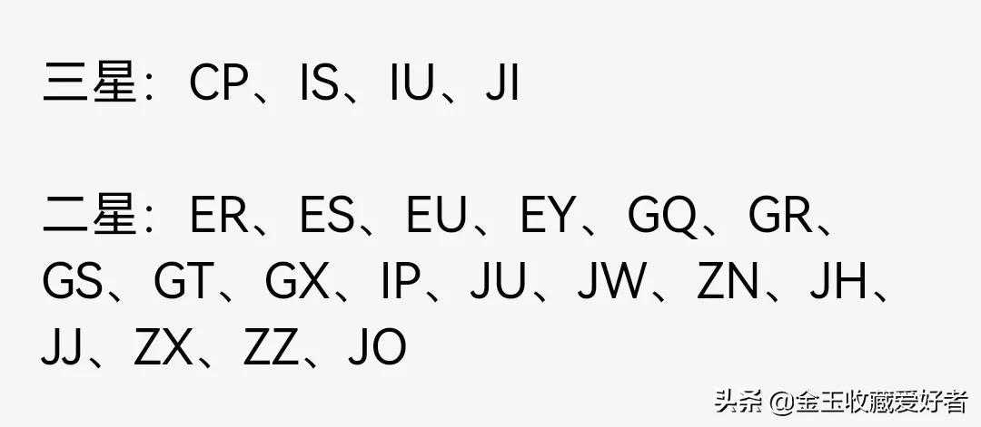 那么,除了四星级、五星级冠号有较高的收藏价值外。位于第三梯队、第四梯队的这些字冠号也都有较高的价值。