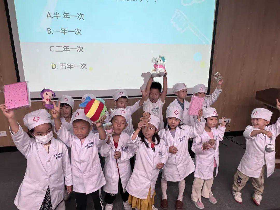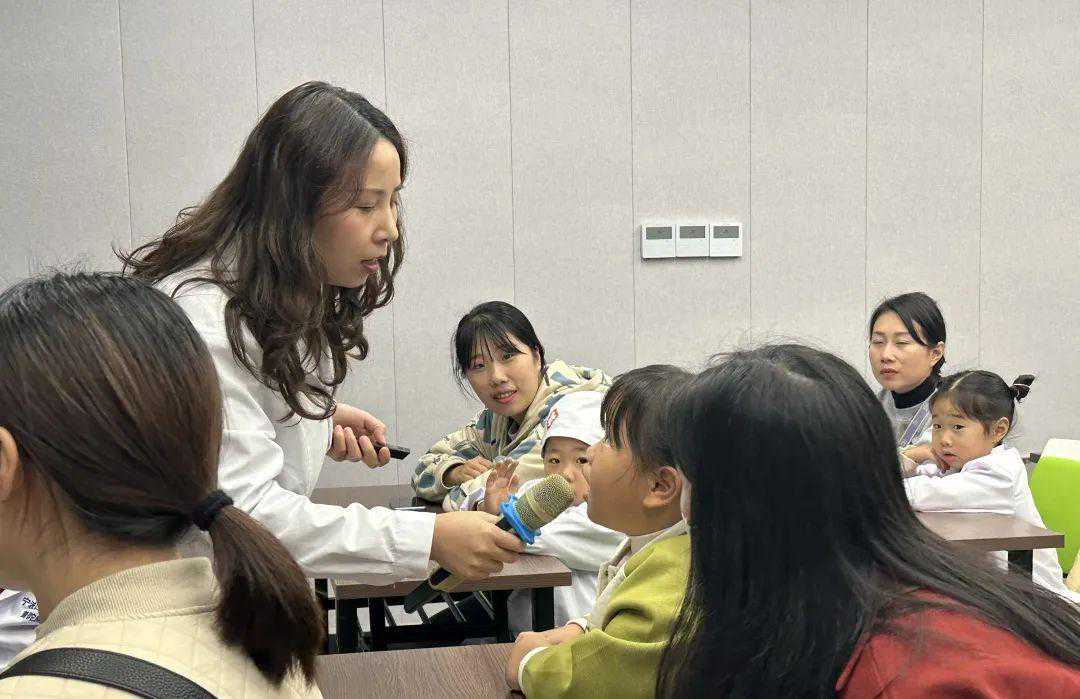 “培训”后,黄院助还通过几个有奖小问答来检验小牙医们的知识储备。问题一出,台下的小朋友们都举起了手,心急的孩子还直接报出了答案。看来,这些问题都难不倒认真听讲的小朋友们。