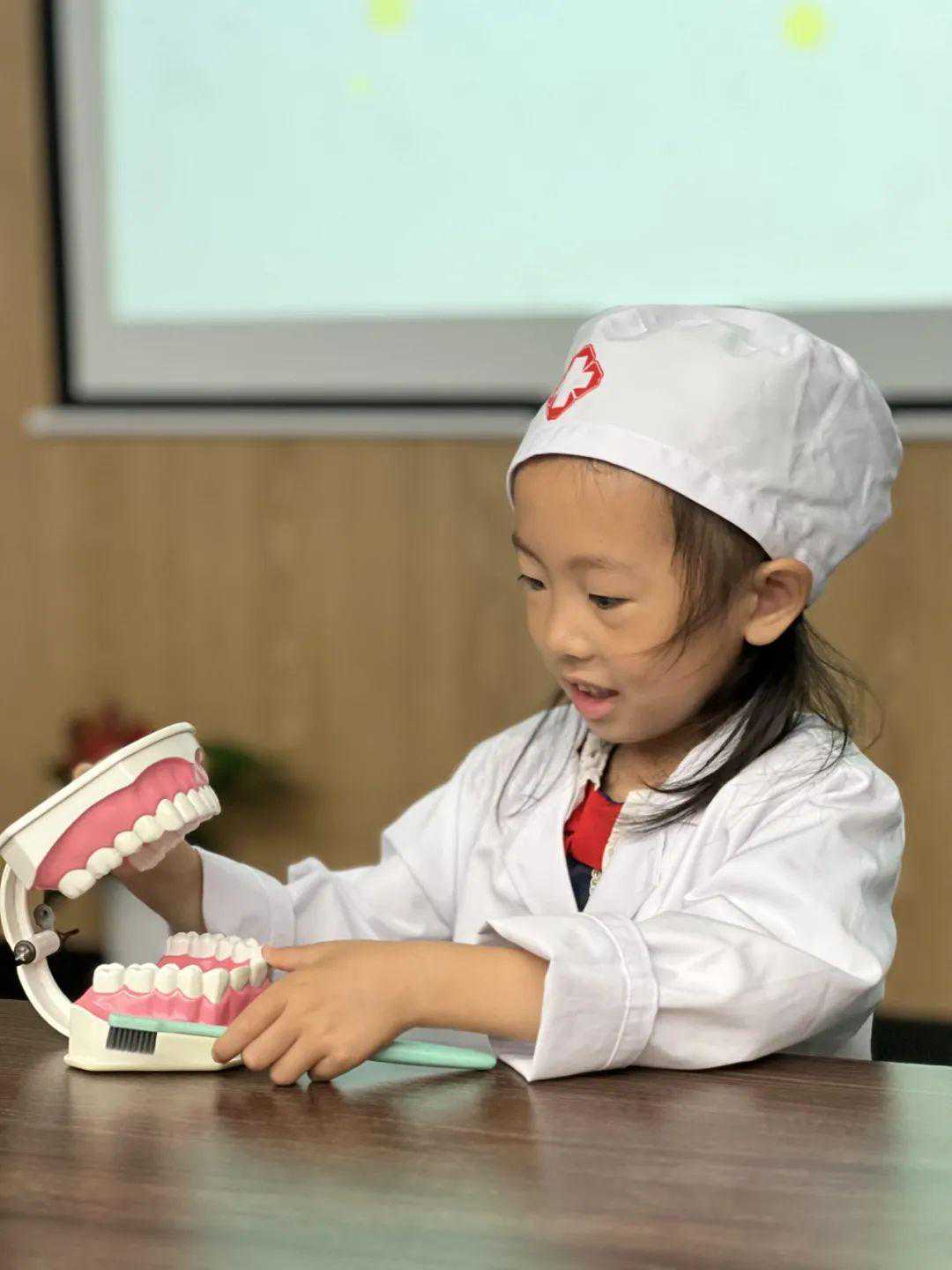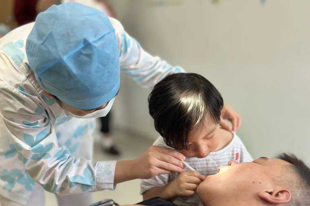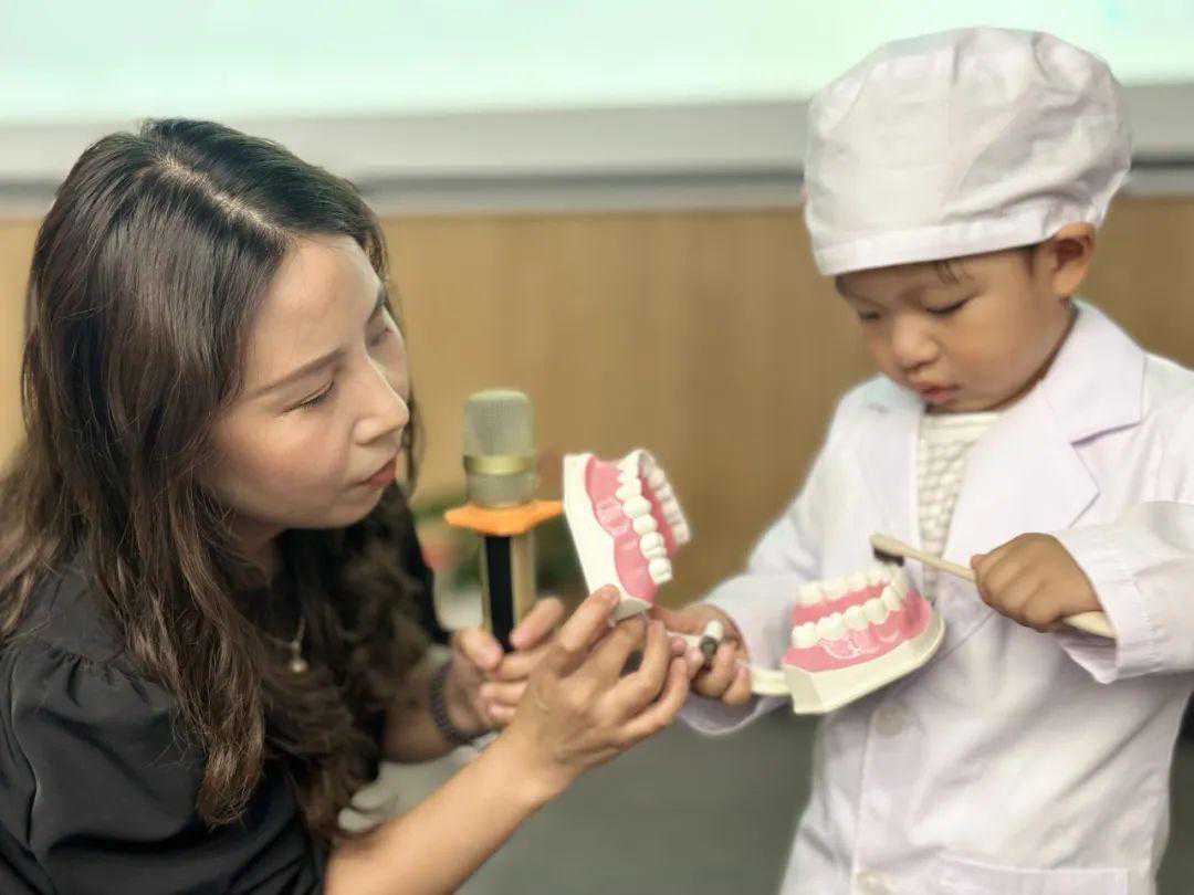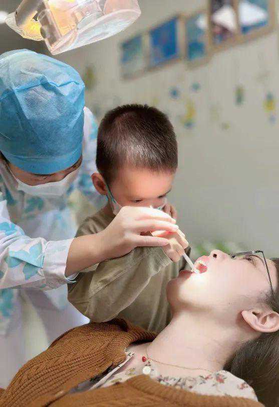 听到孩子的“诊断”后,一位家长也趁机给孩子做起了口腔健康教育:“你看蛀牙是不是不好看啊,所以你要好好刷牙,保护牙齿。不然你的牙齿也会变成这样。”