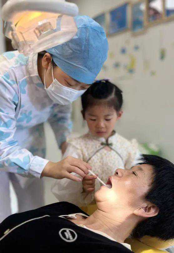 活动过程中,黄院助给部分小牙医安排了给自己的爸爸妈妈检查牙齿。