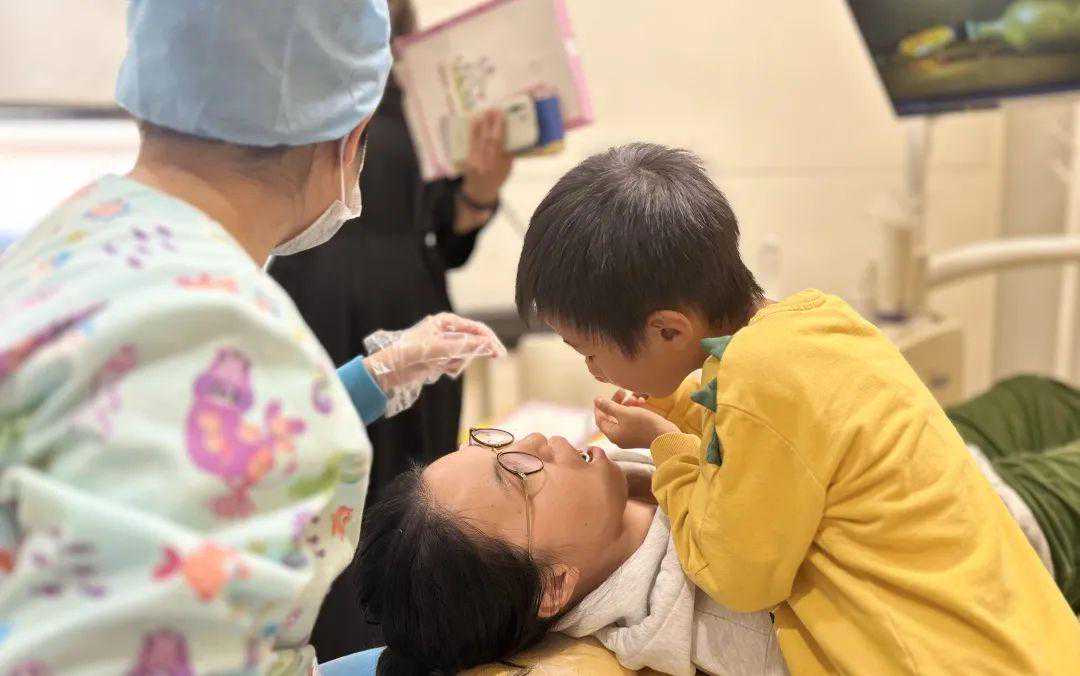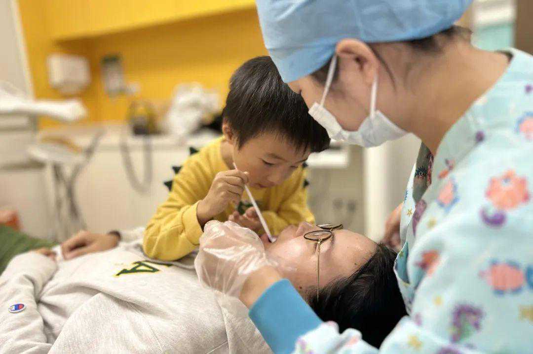 “你看,把内窥镜往里一探,你眼睛朝着这个方向看,有没有看清楚里面的牙齿?”在医生的指引下,小朋友们各个都显得专业范儿十足。