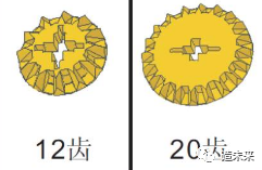 拥有24个弧齿,可以在直角位置与直齿轮啮合。