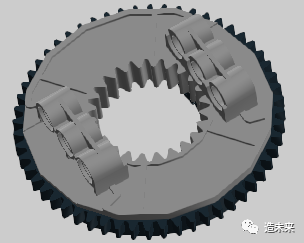 变速环两侧均有四个凸起,与16齿的空转齿轮相锁定后,就可以带动空转齿轮共同旋转。