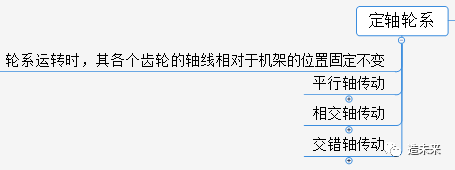 轮系运转时,其各个齿轮的轴线相对于机架的位置固定不变,可分为平行轴、相交轴,交错轴。