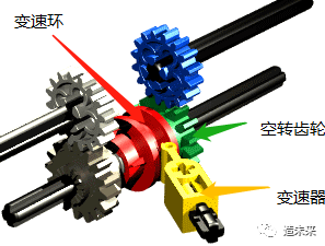由变速联轴器、变速环、空转齿轮和变速器组成,通过变速器拨动变速环,变速环与变速联轴器一侧的空转齿轮锁定,使得空转齿轮随变速联轴器共同旋转,驱动与空转齿轮啮合的齿轮。