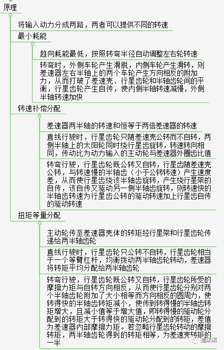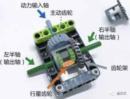 由差速壳、左右半轴齿轮和行星齿轮组成的行星齿机构。