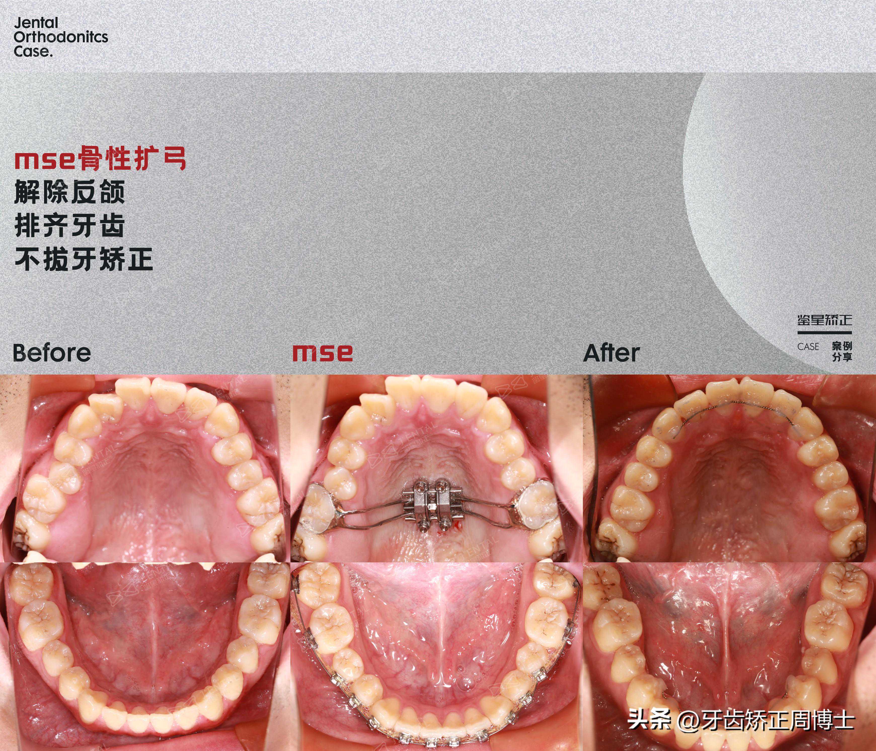 简介本次周医生为大家带来一个反颌(地包天)的案例。男生从小就有明显的地包天问题,直到长大后吃东西咬合很困难才想起来要矫正,兜兜转转找到周医生,经过面诊讨论,告知可以通过掩饰性矫正来解决咬合上的问题。MSE骨性扩弓MSE骨性扩弓改善面型调整咬合方案设计:自锁牙套➕MSE骨性扩弓因为是全牙列反颌,所以方案设...