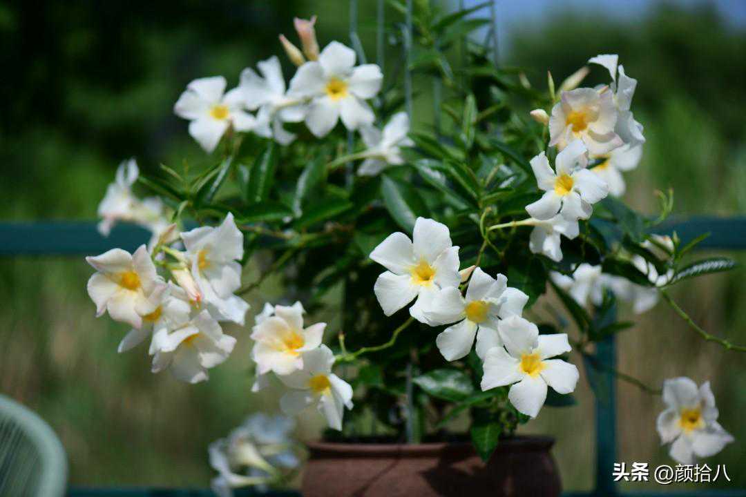 河边的水汽充足,下午4点后就没有西晒太阳了,每天傍晚浇透水,花盆小,第二天又全部干透。这些应该都是这盆飘香藤不断开花的相关因素。